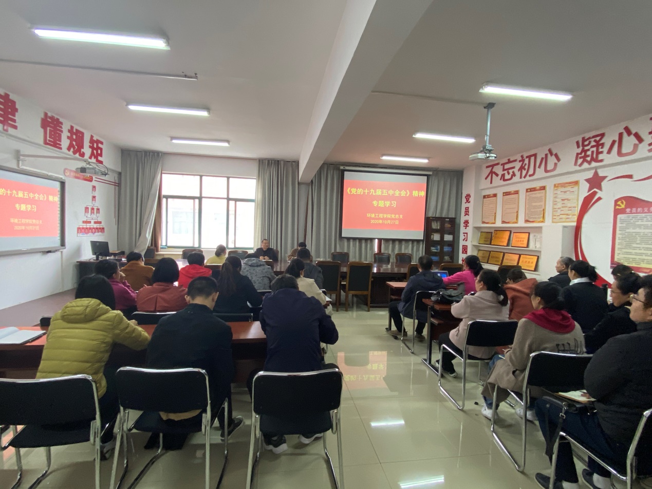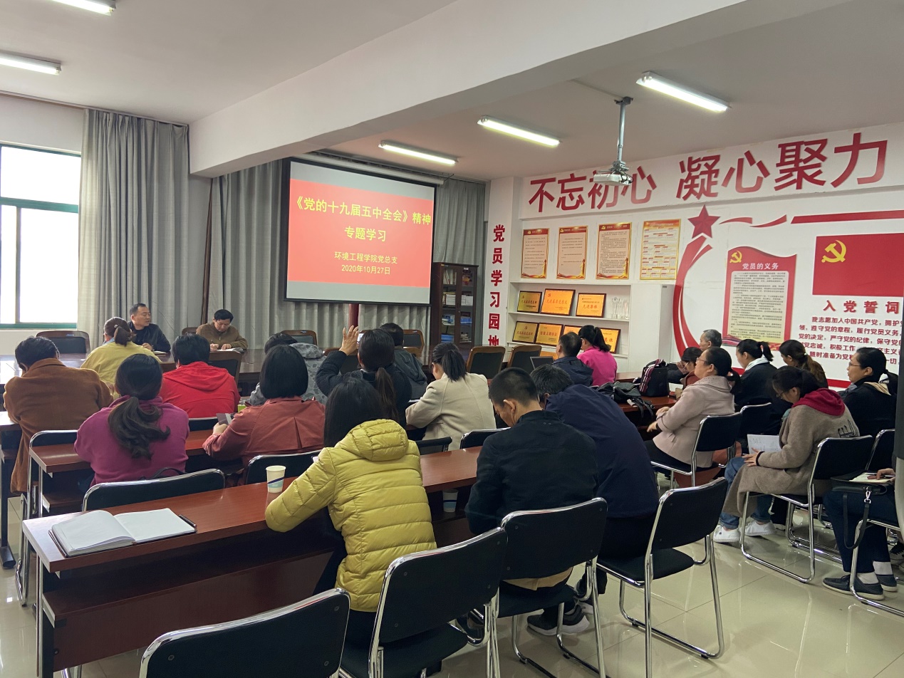 10月26日至29日,中国共产党第十九届中央委员会第五次全体会议在北京召开,全会审议通过了《中共中央关于制定国民经济和社会发展第十四个五年规划和二〇三五年远景目标的建议》。环境工程学院党总支多次召开专题会议学习党的十九届五中全会精神。