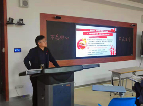 10月17日下午,后勤管理服务中心全体党员在教学楼7212教室聆听党总支书记王建设所做的“不忘初心、牢记使命”主题教育党课,题目是《70年初心不改、70年勇担使命,70年后我们矢志不渝再出发》。