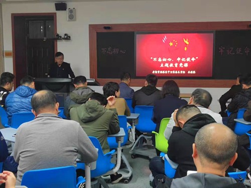 王建设书记强调:“不忘初心、牢记使命”主题教育就是要告诉全体党员要坚定信仰、坚定信念、坚定追求,要了解我党为了中华民族的伟大复兴,矢志不渝的奋斗过程。站在新的历史起点上、站在新的历史征程上,我们仍然要牢记使命、继续拼搏、继续奋斗。他在党课中给大家讲了70年来,在毛泽东、邓小平、习近平等为核心的党中央的领导下,中国在建国初期的开基创业、立纲立纪;党的十一届三中全会的改革开放;新世纪在习近平新时代中国特色社会主义思想的引领下全党全国各族人民进行的伟大斗争、建设的伟大工程、推进的伟大事业、实现的伟大梦想。讲到了70年来在党的领导下,我国创造的一个个中国奇迹、创造的一个个辉煌,以及我国取得的十大成就和五大工程。讲到了70年来,我国的富强要得益于中国共产党艰苦卓绝的领导、得益于70年中国共产党不忘初心、牢记使命带领全国人民坚持不懈的奋斗,得益于坚定不移的走中国特色的社会主义道路,得益于人民群众在党的领导下的艰苦奋斗。讲到了在新的历史时期、在新的历史征程上要不忘初心、牢记使命、扬帆远航,稳步推进我们的扶贫梦、发展梦、法制梦、和谐梦,直至实现“中国梦”。讲到在“双高”背景下,后勤要提升理念、改变观念;规范管理、健全制度;树立文化、完善机制;提升服务、提档保障,通过后勤特色的“六抓六结合”的主题教育让后勤各项工作再上新台阶。