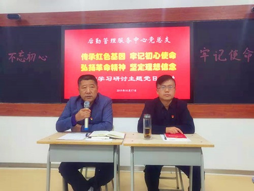 10月17日下午,后勤管理服务中心党总支利用整整一下午,在教学楼7212教室进行了内容丰富的“不忘初心、牢记使命”主题教育专题日活动,活动由主任、党总支副书记胡振江主持,后勤全体党员参加。