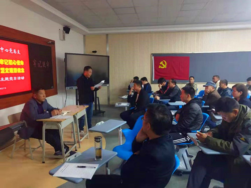 专题日活动分为三个阶段:第一阶段:看开国大典视频,由总支书记王建设做“不忘初心、牢记使命”主题教育党课;第二阶段:看习近平总书记视察河南的新闻视频,开展“传承红色基因、牢记初心使命、弘扬革命精神、坚定理想信念”集中学习研讨主题党日活动;第三阶段:宣读组织部两个文件,安排部署主题教育相关工作。