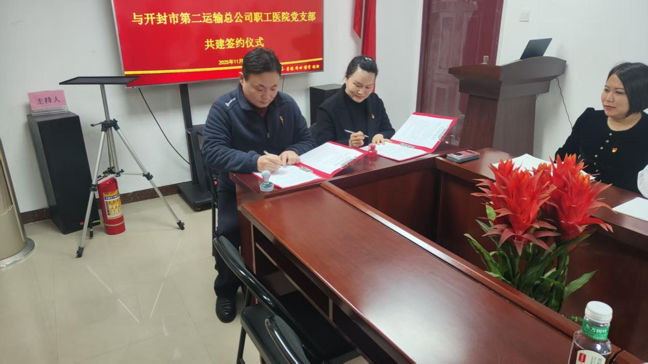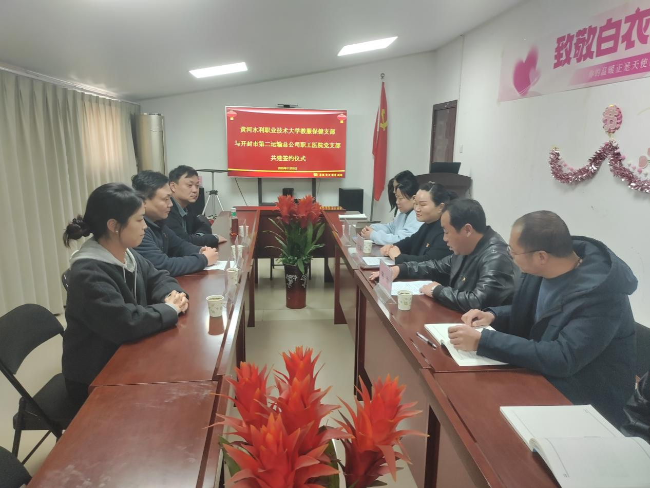 为深入贯彻落实新时代党建工作要求,推动基层党组织协同创新,实现资源共享、优势互补,11月5日,黄河水利职业技术大学教服保健党支部与开封市第二运输总公司职工医院党支部在社区医院党建活动室举行党建共建签约仪式。365官网教服保健党支部书记杨树峰、支委党员王科、马祎琛,开封市第二运输总公司职工医院党支部书记张红燕、工会主席韩坤及党员骨干共同出席此次签约活动。
