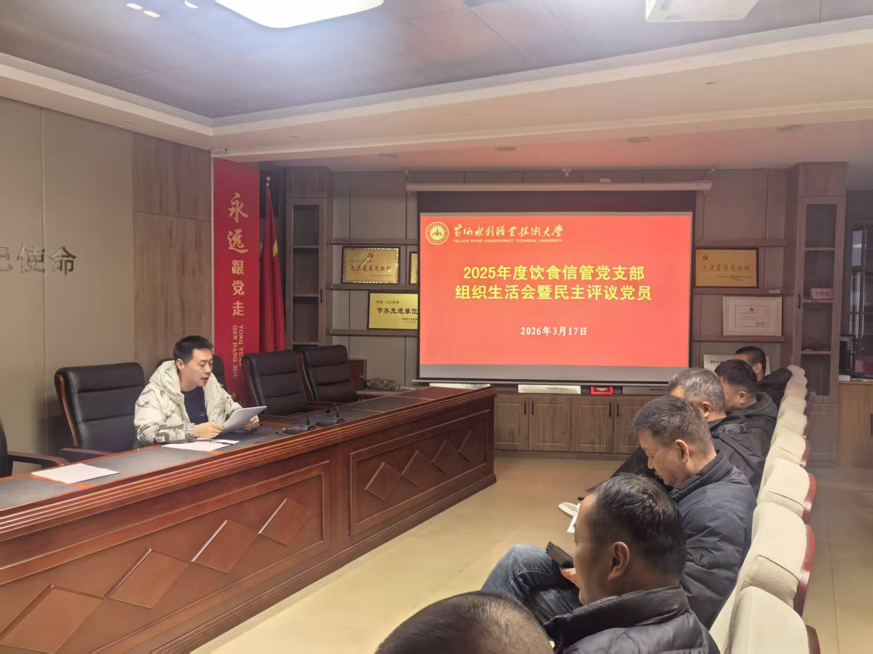 2026年3月17日,后勤管理服务中心党总支饮食信管支部在后勤四楼党员之家组织召开组织生活会暨民主评议党员大会 ,会议由支部书记张文欢主持,支部全体党员参加会议。