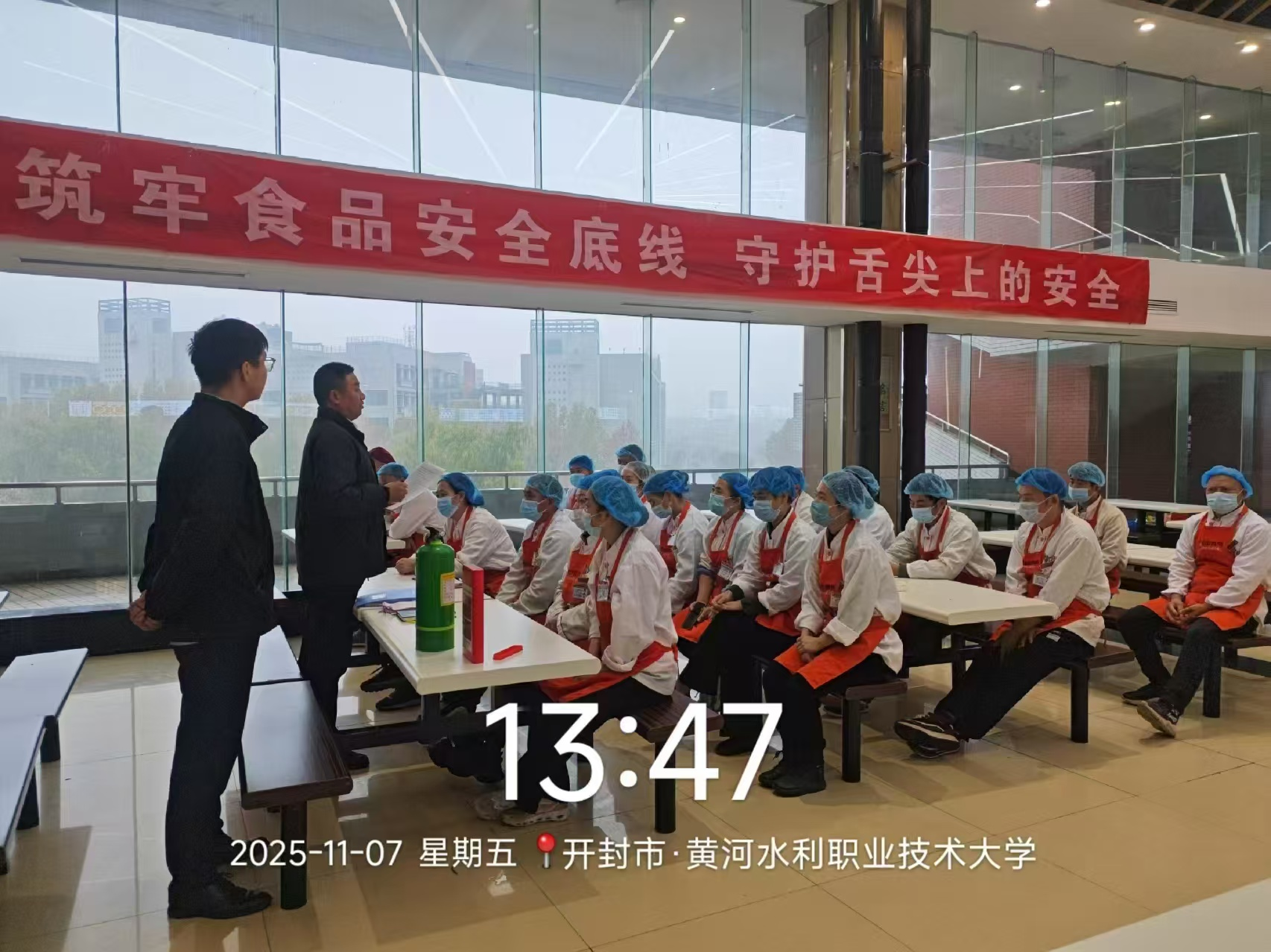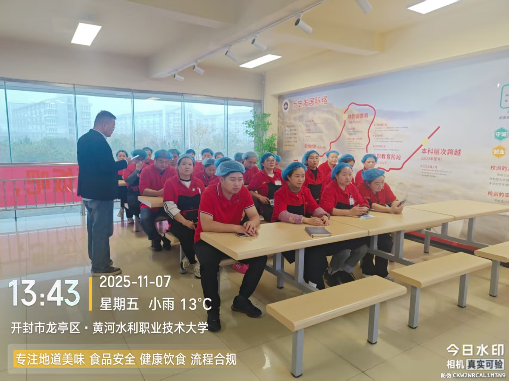 为切实强化学校餐饮从业人员食品安全责任意识,提升学校餐饮管理能力和水平,有效保障冬季学校师生饮食安全,11月3日,黄河水利职业技术大学后勤管理服务中心组织开展了2025冬餐饮服务行业食品安全操作规范培训。后勤管理服务中心党总支书记管欣,主任任璐,饮食服务科工作人员、餐饮公司项目负责人参加了此次培训。培训会议由管欣主持。