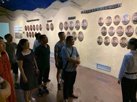 接着党员老师进入了黄麻起义和鄂豫皖苏区革命历史纪念馆。历史纪念馆中收录了76位烈士、44位麻城籍将军、86位英模的资料,摆放着几百件革命文物和上千幅革命历史照片,以序厅大型雕塑《大别山雄风》开篇,以尾厅大型组合照片《将军摇篮》结束,以《黄麻惊雷》、《商南烽火》、《皖西烈焰》、《赤区新貌》、《鏖兵大别》、《浴血孤旅》六个单元展出,着力展现了鄂豫皖革命根据地“英雄的山——英雄的人民——英雄的业绩——英雄的精神”,充分运用声、光、电、半景画、大型沙盘模型、置景等艺术手段,陈列具有强烈的震撼力和感染力。