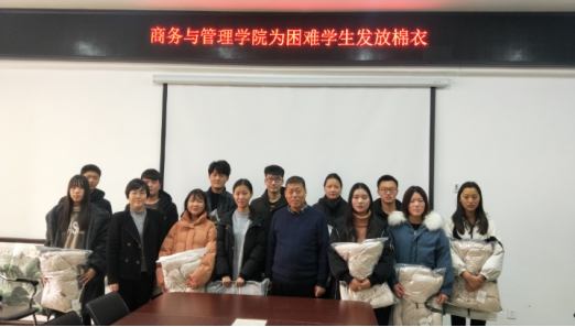 商管院书记范建科和主任周爱荣为前来领取棉衣的同学指导挑选棉衣,接过衣服,很多同学迫不及待地试穿起来,同学们都非常兴奋,对衣服的款式、颜色、尺寸都表示非常满意。书记和主任并询问他们的学习和生活情况,详细了解学生的需求,鼓励他们要不畏困难,自立自强,珍惜在校时光,勤奋学习,求真学问,练真本领,用知识改变命运,用奋斗成就未来。
