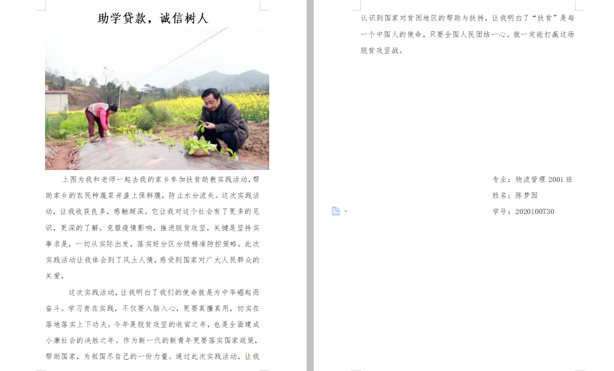 自活动开展以来,共收到学生参赛作品96份,同学们所提交的征文作品情感细腻,表达了同学们的真情实感;图片作品以小见大,弘扬社会主旋律。同学们的参赛作品叙写、记录了国家资助政策及脱贫攻坚相关事例,并体现出国家资助政策的关怀以及社会各界在脱贫攻坚方面的努力付出。12月2日,我院组建由资助专员肖星野老师和学院辅导员陈永胜、张晋豪老师参与的比赛评委组,对参赛同学所提交的作品进行评比指导。最终评比出一等奖一名,二等奖二名,三等奖二名。此次比赛圆满结束。