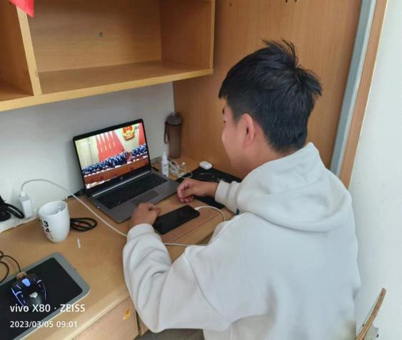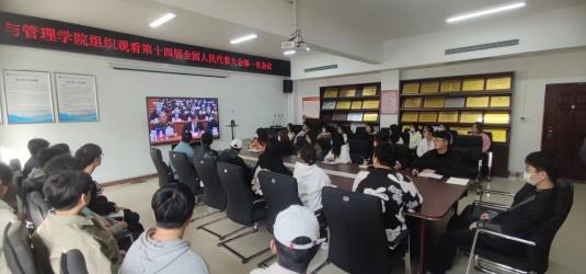 第十四届全国人民代表大会第一次会议于 3 月 5 日上午 9:00 在北京人民大会堂开幕,beat365唯一官网组织团学干部、青年学生观看会议,商务与管理学院积极响应学校号召,于sy5420组织观看会议开幕实况直播,聆听了国务院总理李克强作的《政府工作报告》。
