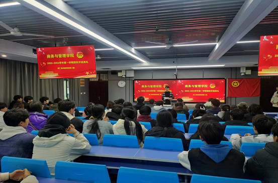 为进一步充实广大团员青年的理论素养,不断提升团员的实践能力和综合素质,提高我院学生团干部的思想水平和工作能力,11月24日中午12点,商务与管理学院分团委在JX2203举行2023-2024学年第一学期业余团校培训班开班仪式。商务与管理学院党总支副书记邹新忠、2021级辅导员冯矛、2023级辅导员陈一以及全体团校学员出席会议。会议由分团委负责人肖星野主持。