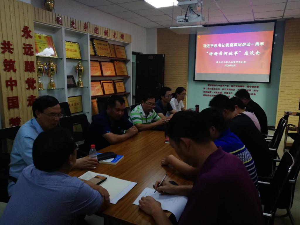 为了纪念习近平总书记视察黄河讲话一周年,进一步推动黄河流域生态保护和高质量发展国家战略,2020年9月15日下午14:40,水利工程学院教工水工技术与管理教工支部在SY5306党员活动室召开了主题为“讲好黄河故事”支部座谈会,水利工程学院副院长闫国新出席了会议,党支部书记王建伟同志主持了此次座谈会。
