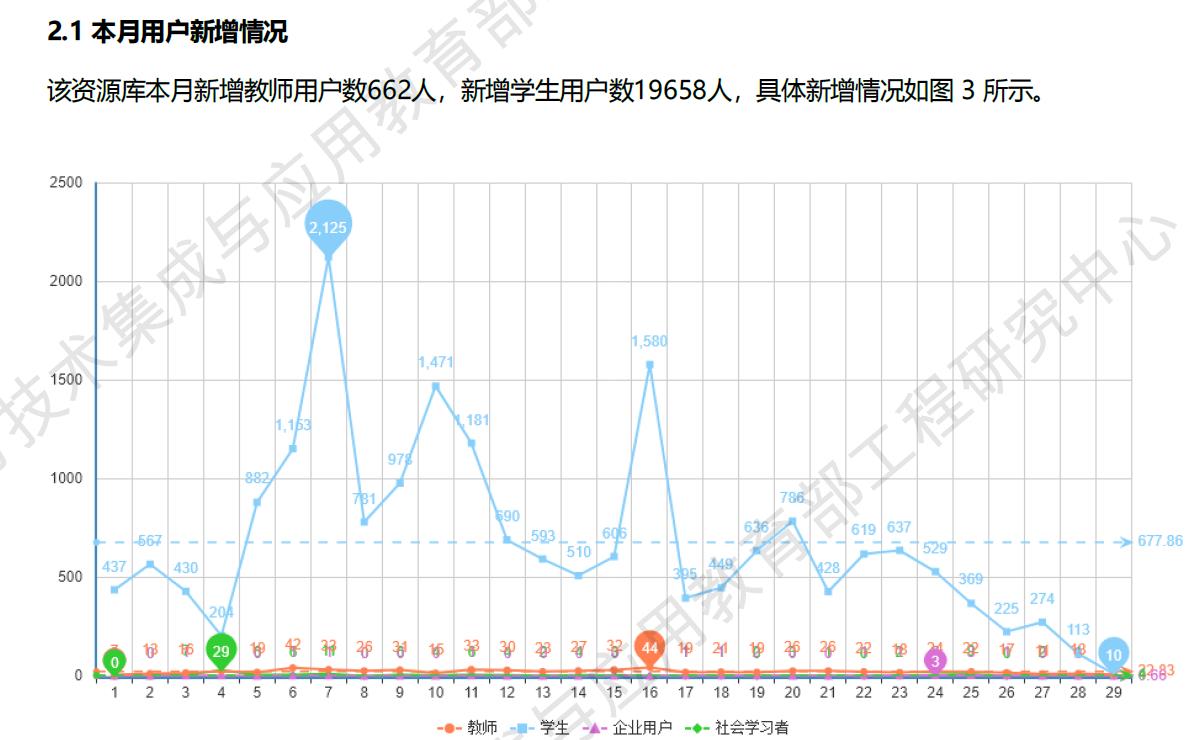 图3 教育部工程技术研究中心发布资源库数据(用户新增)