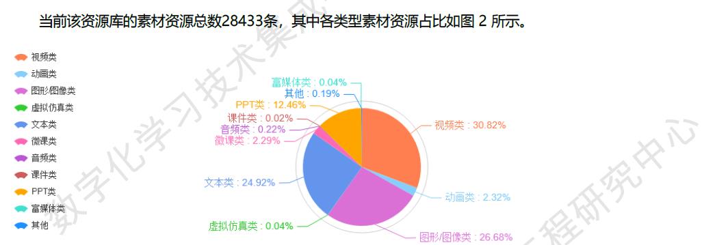 图5 教育部工程技术研究中心发布资源库数据(资源总量及类型分布)