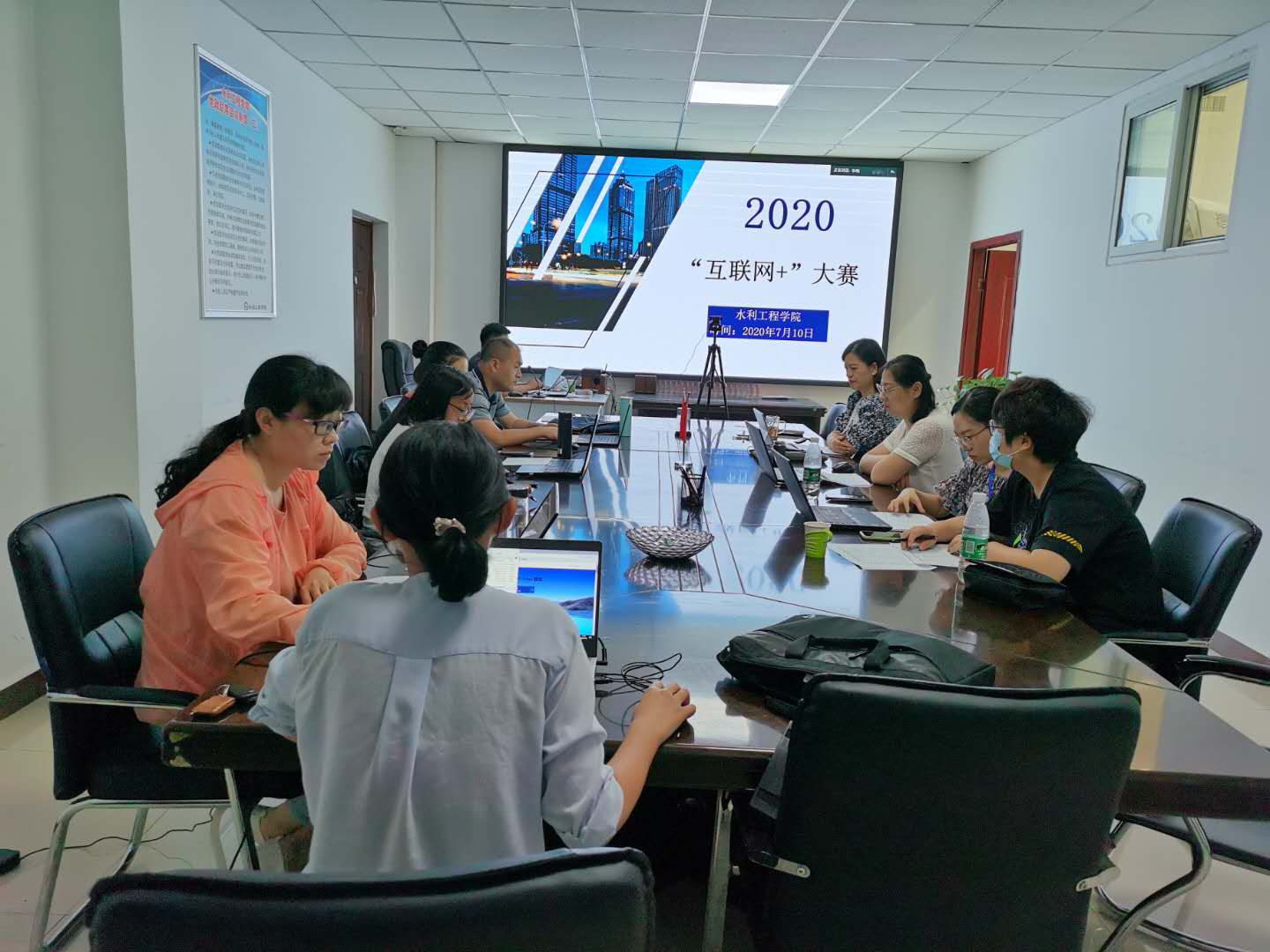 为响应全国教育大会精神,激发大学生的创造力,培养“大众创业,万众创新”的生力军,水利工程学院于2020年7月10日下午在SY5312举办了水利工程学院“互联网+”创新创业大赛。本次大赛邀请了河南省小流域生态水利工程技术研究中心主任陈诚、水利工程学院副院长冯峰等老师担任评委。