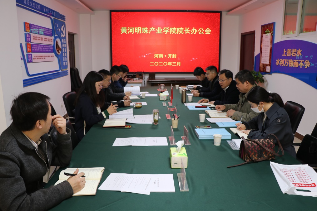 本次会议研究了黄河明珠产业学院校园基建改造和园区绿化设计方案;听取了产业学院规章制度制定情况、办公网建设及试运行情况等,并对职业教育培训评价组织及职业技能等级证书(“1+X”证书)申报工作进行了讨论。