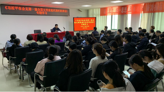 4月27日下午,水利工程学院在SY5310召开《习近平在会见第一届全国文明家庭代表时的讲话》专题学习会,会议由党总支书记孙天星主持,全体教职工参会。