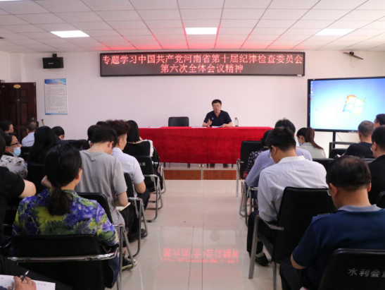 5月25日下午,水利工程学院在SY5310召开专题学习会议,深入学习中国共产党河南省第十届纪律检查委员会第六次全会工作会议精神,学院党总支书记孙天星、院长陶永霞及全院教职工参加了会议。会议由孙天星主持。