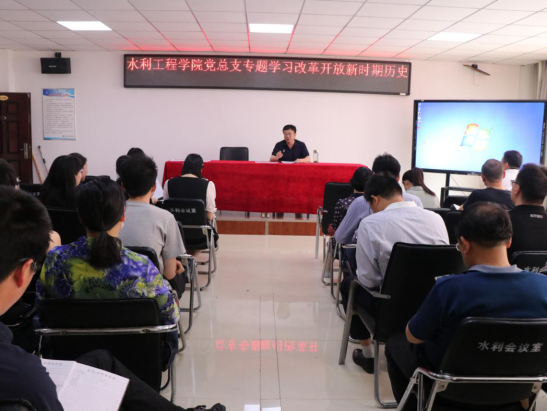 5月25日下午,水利工程学院在SY5310召开改革开放新时期历史专题学习会,学院党总支书记孙天星、院长陶永霞及全院教职工参加了会议。会议由孙天星主持。