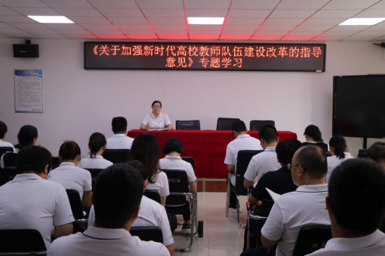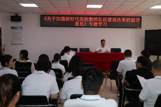 为全面学习贯彻习近平总书记关于教育的重要论述和全国教育大会精神,加强新时代教师队伍建设,6月8日下午,水利工程学院在SY5310开展《关于加强新时代高校教师队伍建设改革的指导意见》专题学习会,学院党总支书记孙天星、院长陶永霞及全院教职工参加了会议。会议由孙天星主持。