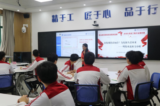 在活动上,教育部课程思政示范课程《水力分析与计算》团队田静老师进行了题为“问渠那得清如许,为有源头活水来——明渠水流水力分析”的示范课教学展示。教学展示之后,与会专家对示范课进行了精彩的点评,提出了很多中肯的意见和建议。全体与会党员与课程团队成员围绕服务黄河流域生态保护与高质量发展和课程思政的探索与实践开展了热烈的讨论。