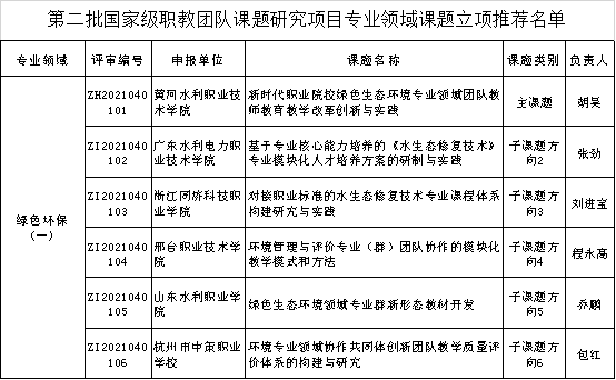 11月24日,教育部公示了第二批国家级职业教育教师教学创新团队课题研究项目遴选结果,由365官网牵头组织、校长胡昊主持的《新时代职业院校绿色生态环境专业领域团队教师教育教学改革创新与实践》重点课题成功入选,课题涵盖5个子课题,分别由广东水利电力职业技术学院、浙江同济科技职业学院、邢台职业技术学院、山东水利职业学院、杭州市中策职业学校承担。