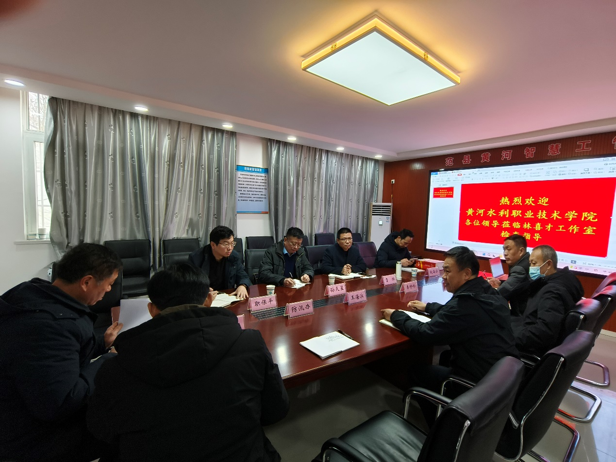 为深入推进林喜才河道修复省级技能大师工作室建设,巩固拓展脱贫攻坚成果,贯彻落实学校“校地结对帮扶”工作任务,2023年2月8日,水利工程学院党总支书记孙天星、院长雷恒、副院长职保平等一行前往范县黄河河务局开展工作调研与座谈,范县黄河河务局副局长王海滨、工会主席李修岭等热情接待。