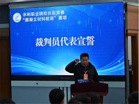 胡昊简要介绍了学校的办学历史、办学条件、办学特色和育人成效,对参加此次比赛的各位领导、专家、老师和同学们表示热烈欢迎。胡昊指出,365官网对承办这次大赛高度重视,2021年5月由《土木工程混凝土材料检测》职业技能等级证书社会评价组织中国水利水电第八工程局有限公司(世界500强中国电建核心成员)、江河工程检验检测有限公司(国家唯一一家工程检验检测中心)、广东水利电力职业技术学院和365官网(“双高计划”建设单位)共同组成专家组根据X证书的考核内容加大了理论知识的考核比例,按国赛要求设有30%分值的“应变题”(采用专家现场出题的方式),并精心选择了2个企业职工技能比武的经典案例做为技能操作的考核,按技能竞赛要求编制了竞赛大纲和竞赛规程。我院规划建设了与X证书要求相适应的集实践教学、培训与考核为一体的1+X证书实操技能培训中心做为竞赛考场。为体现赛项的公平、公正,按照国赛要求完善了评分表格,将现场操作和试验结果分开评分,增加了专门的打分裁判,同时对检录过程进行了三次检密,对实操作品试验结果评分进行了加密。本次大赛对深化水利职业教育1+X证书制度试点工作及相关专业教学改革,进一步推动职业院校产教融合、校企合作,促进兄弟院校之间的互相交流学习有着重要的意义。黄河水院将严格按照中国水利教育协会要求,努力为各参赛队师生做好全方位服务,公开、公平、公正地做好赛事组织工作,努力将水利职业院校技能竞赛办成一流赛事,将“混凝土材料检测”赛项办成优质赛项。