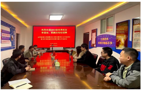 2023年4月23日上午,2002级水利水电建筑工程专业优秀校友李国培、郭鹏回母校招聘。水利工程学院副院长陈西良、校企合作办公室万柳明、朱永娇和部分2019级水利工程专业(本科)学生参加了此次招聘和座谈。
