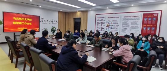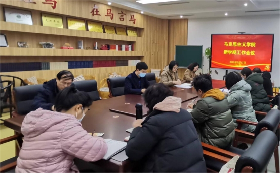 2023年2月17日上午,马克思主义学院在会议室召开新学期工作会议。会议由院长焦红强主持,全体教师参加了本次会议。