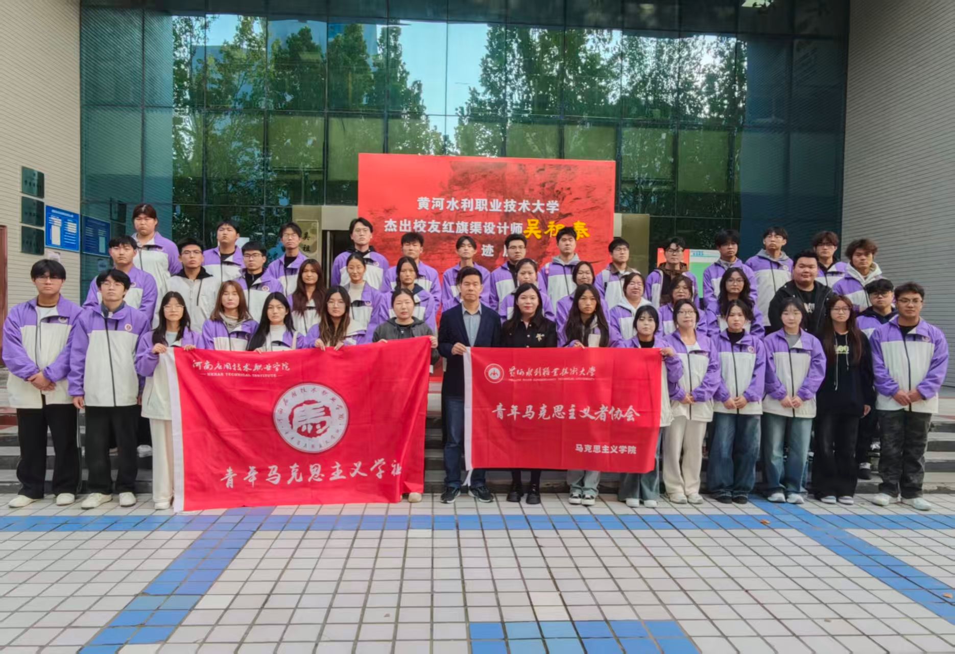 2025年10月22日下午,我院青年马克思主义者协会、爱国社、爱心社学生与河南应用技术职业学院青年马克思主义学社联合开展了“传承黄河精神 致敬建设先锋”主题实践教学活动。本次活动由两校马克思主义学院、河南省青年宣讲名师乔新杰工作室主办,我院焦红强院长、河南省青年宣讲名师乔新杰、河南应用技术职业学院马院李兰英副院长出席指导活动。