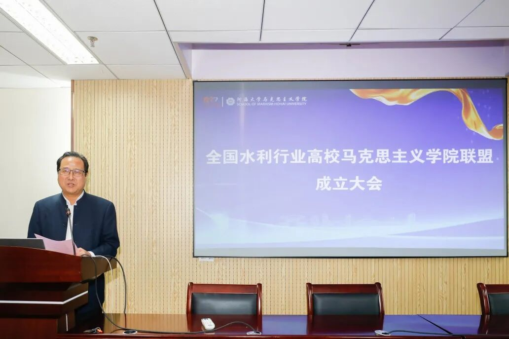 河海大学马克思主义学院院长戴锐在成立大会上就联盟成立的意义、发起过程、联盟章程的制定等情况作了说明。他强调,联盟以马克思列宁主义、毛泽东思想、邓小平理论、“三个代表”重要思想、科学发展观、习近平新时代中国特色社会主义思想为指导,全面贯彻党的教育方针,旨在加强全国水利行业高校马克思主义学院或其他思想政治理论课教学机构的交流协作,共同致力于推动马克思主义理论与水利行业实践、水利精神、水文化传承创新的深度融合,提升马克思主义理论学科和思想政治理论课建设水平、教育教学质量,创建水利特色鲜明的马克思主义学院,为新时代水利事业和国家、社会发展做出特色化的重要贡献。联盟遵循“自愿平等、资源共享、协同创新、合作共赢”的原则,在教学教研、科研攻关、师资互聘、人才培养、学科建设、文化传承、社会服务等方面开展广泛的合作共建。