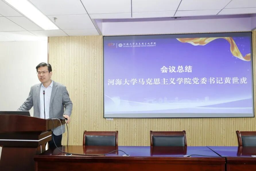 河海大学马克思主义学院党委书记黄世虎对会议进行总结。他通过“聚合力”“明路径”“强使命”三个关键词,对本次会议的特点予以概括,并向参会高校代表发出倡议,呼吁一起成为“联盟建设的参与者”“特色思政的创新者”“协同育人的践行者”。他期望联盟成员单位以此次会议为新的起点,在联盟的引领下携手前行,把思想共识转化为育人实践,借助水利特色思政教育为强国建设注入精神力量。