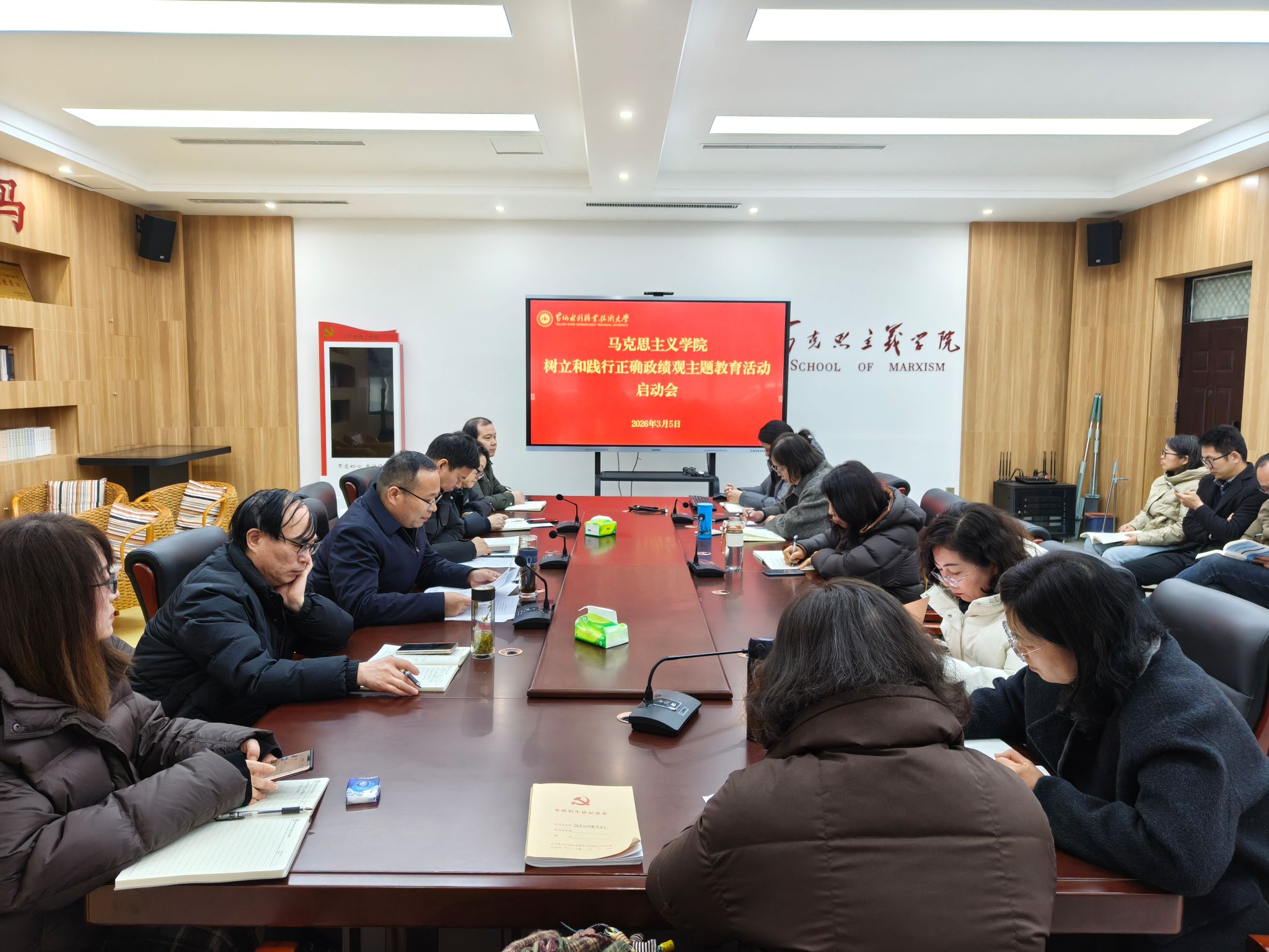 3月5日上午,马克思主义学院在会议室召开2026年春季新学期工作会议,全面部署新学期各项工作。