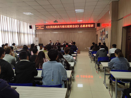 《国家职业教育改革实施方案》宣讲暨全国高职高专校长联席会议主席团(扩大)会议将于3月29日—3月31日在365官网召开,3月25日,365官网在学生活动中心302室进行会议志愿服务工作安排并开展志愿者培训,校团委全体人员及被招募、选拔出的近百名志愿者参会。