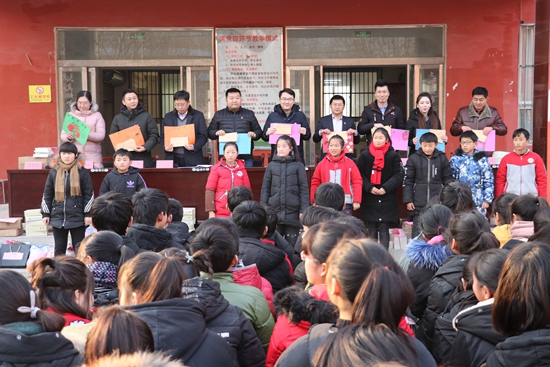 1月18日下午3点,在范县张庄乡中学举行了“大手拉小手,共圆微心愿”关爱贫困留守儿童捐赠仪式。范县团县委书记李鹏宇、教育局副局长韩永先、张庄乡中学校长白斌,365官网团委书记李聪、副书记郝黎闻、各学院团委书记代表及学生干部代表参加了捐赠仪式。
