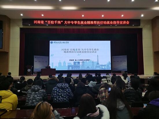 本次宣讲是河南省“百校千岗”大中专学生就业精准帮扶行动的一部分。“百校千岗”计划重点面向河南省建档立卡贫困家庭大中专(包括普通本科院校、高等职业院校、普通中等专业学校)毕业生和离校两年内未就业的高校毕业生、离校两年内未就业的中专中职毕业生和在豫就读新疆籍大学生等群体。通过“百校千岗”就业精准帮扶行动,力争到2020年年底,为不少于7000名河南省贫困毕业生提供就业帮助。