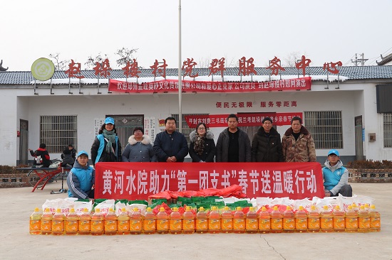 春节将至,为助力“第一团支书”做好精准扶贫工作,让结对帮扶村的贫困户度过一个温暖祥和的新年, 1月16日下午,冒着严寒,校团委的老师们与寒假社会实践“小水滴”志愿服务队的同学们一起到兰考县葡萄架乡赵垛楼村开展春节送温暖走访慰问活动。