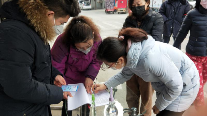 于明琦同学每天在社区出入监测点定时值班,每天说的最多的话就是:“您好,麻烦您配合下,您需要进行体温测量。”“您好,外来车辆不能入内。”“您好,您请这边进行登记。”“您好,我们需要对车辆进行消毒。”“您好,特殊时期,每户只允许一人外出采购。请您理解”“您好,您先别着急,我帮您沟通。”您好.....您好......”对社区进出人员进行详细的情况了解、登记、防疫政策的宣讲、对物品的消毒都成了每天志愿工作的主要任务。面对居民的不理解,她总是一一耐心的解答;面对繁琐的步骤,她总是有条不紊的进行;面对高强度的志愿工作,即使嗓子哑了,手冻的通红她也从不喊累。
