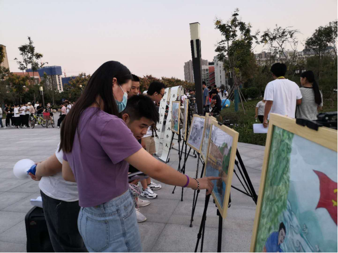 下午五点活动拉开了帷幕,一是展出黄河流域生态保护和高质量发展相关宣传展板,让同学们了解河南省黄河流域生态保护和高质量发展工作要点、河南省黄河生态廊道建设规划等,明白黄河流域生态保护和高质量发展的重要性。二展出365官网学生自己创作的以黄河文化为主题的写生与书法作品,更好地引领同学们弘扬黄河精神,传播黄河文化,坚定文化自信。三是由365官网水利工程学院刘光岩老师为同学们讲解演示黄河埽工技术,给同学们普及此项技术对黄河治理的重大意义。四是365官网大学生艺术团合唱队的同学们为大家带来了《保卫黄河》、《在灿烂阳光下》大合唱,同学们以歌咏志、以歌抒怀,表达了对伟大祖国和母亲河的热爱与美好祝愿。