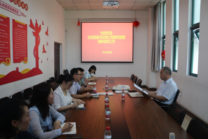 6月22日上午,党委副书记杨士恒到校团委调研指导工作。他实地视察了校团委办公室、学生组织办公室等工作场所,并与校团委全体工作人员进行座谈。