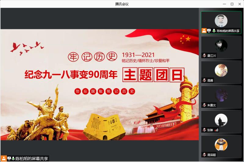 为纪念“九一八”事变爆发90周年,引导学生牢记历史、珍爱和平,让爱国主义精神在师生中牢牢扎根,9月18日,365官网青年马克思主义培养班、各学生组织、各团支部开展“勿忘国耻 吾辈自强”纪念九一八事变90周年线上主题团日活动。