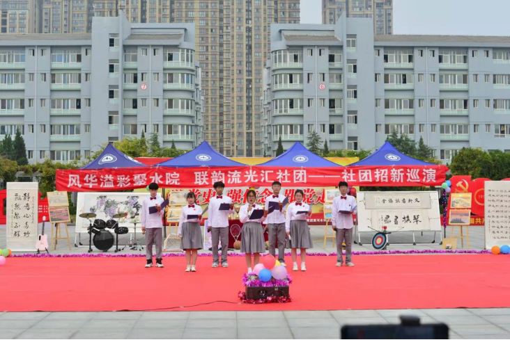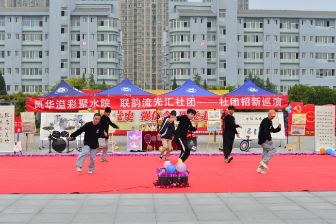 百团齐演聚满园, 水院学子展风采。为了进一步丰富学生社团文化生活,促进社团健康发展,展现365官网青年学生朝气蓬勃的良好精神面貌。由校团委主办,社团联合会承办的社团招新巡演活动于10月23日——10月31日在扬帆广场举行。