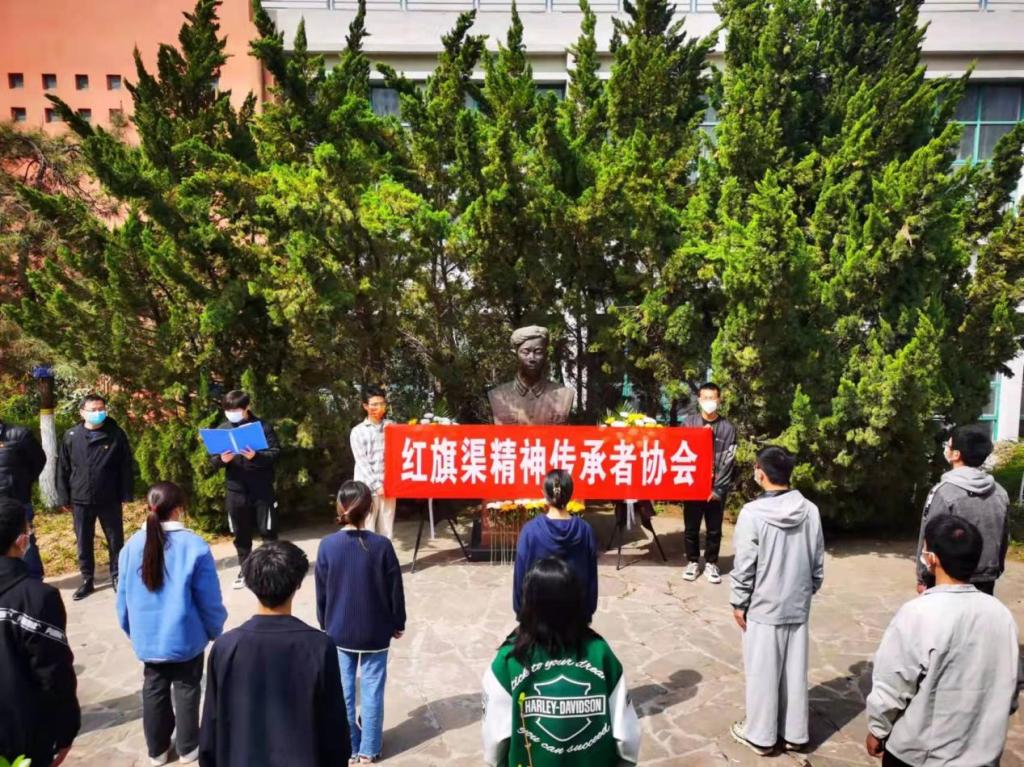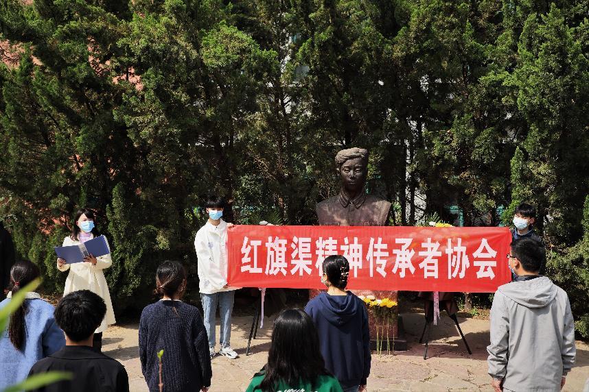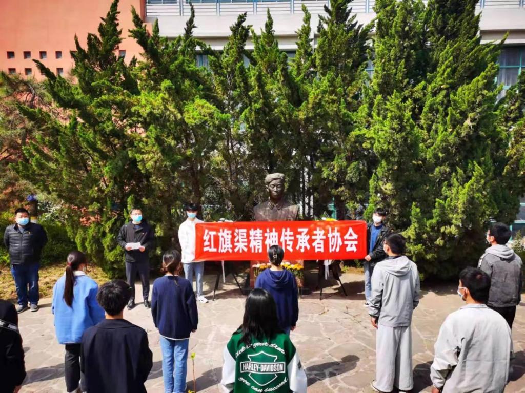校团委书记范龙发言,他要求同学们要深切缅怀革命先烈,不忘初心使命,汲取前行力量,大力弘扬红旗渠精神,传承以红旗渠总设计师吴祖太为代表的优秀校友所展现的“艰苦创业”精神,自觉将个人价值实现与民族复兴结合,争做具有“黄河水院味道”的新时代青年,肩负起新时代赋予的历史使命。