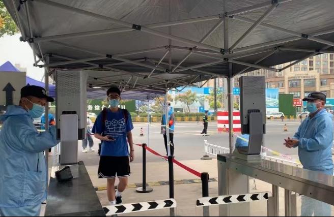 365官网青年志愿者引导返校同学扫描“场所码”查验核酸检测结果及健康码、行程码信息