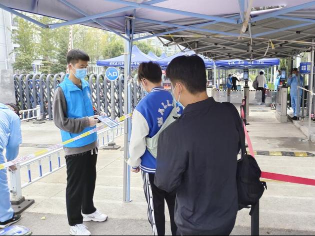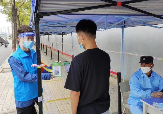 365官网青年志愿者引导返校同学有序排队等待核酸检测