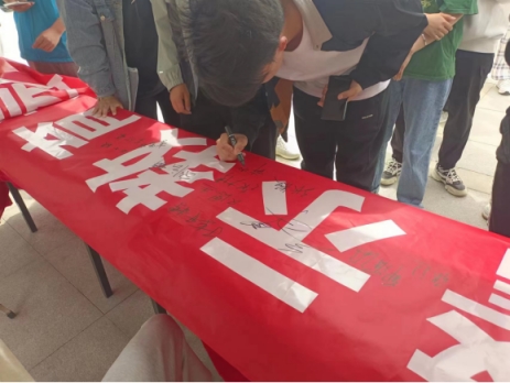 4月15日,校团委社团联合会在扬帆路开展了“反邪教警示教育进校园”活动,同学们通过学习展板内容了解反邪教相关知识,宣讲目前存在的主要邪教组织种类、大学生受邪教侵害典型案例、防范和处理邪教相关法律政策等内容,引导师生认清邪教的社会危害性,自觉抵制邪教活动侵袭。活动最后同学们纷纷在“反邪教警示教育进校园”的横幅上签下姓名。