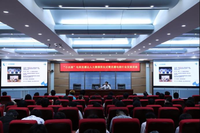 5月27日,365官网首届“小水滴”电商直播达人大赛颁奖仪式暨直播电商行业发展讲座在3号实训楼报告厅成功举办。校团委副书记郝黎闻、商务与管理学院副院长吕梁、河南乐畔电子商务有限公司总经理刘松攀以及近二百名学生代表参加了本次活动。活动由校团委宣传部部长拜可主持。