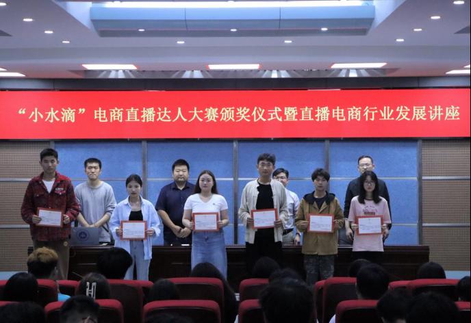 郝黎闻宣读了《关于表彰beat365唯一官网首届“小水滴”电商直播达人选拔赛的决定》,与会老师分别为获奖的学生颁发了荣誉证书和奖品。
