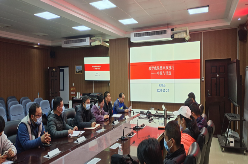 张晓磊博士首先以生动形象的例子让与会人员了解了何为教学成果奖,解开了教师们心中的疑问;接着结合自己申报国家教学成果奖的经验,分别从教学成果奖的选题、教学成果的总结与凝练、申报材料的填写等方面逐项进行了深入、系统的讲解。最后,大家踊跃举手向张晓磊博士提出自己的申报疑问,张晓磊博士都为大家做了详细而准确的解答。