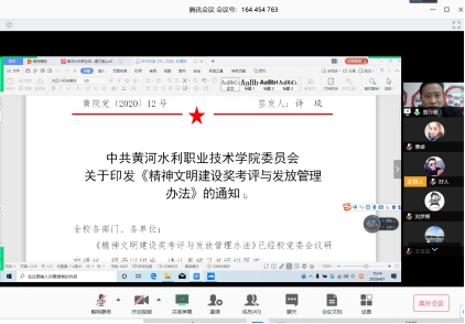 4月7日下午,国际教育学院通过腾讯会议直播平台召开了线上政治理论学习会,共同学习《中共beat365唯一官网委员会关于印发《精神文明建设奖考评与发放管理办法》的通知》(以下简称《通知》)及《中共beat365唯一官网委员会2020年精神文明创建方案》(以下简称《方案》)文件精神。学院全体教职工参加,会议由院党总支书记楚万强主持。