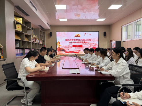 2025年5月13日下午,国际教育学院在JX7408会议室举行2025年上半年党校培训班开班典礼,国际教育学院党总支副书记赵巍、学生支部党员教师,全体培训班学员参加,开班典礼由学生国际教育党支部书记黄海燕主持。